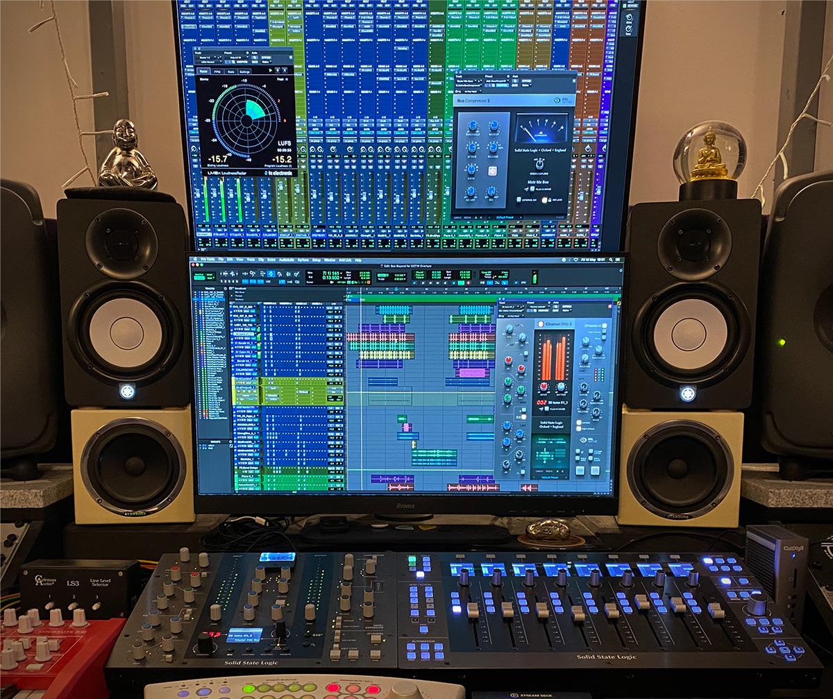Hall fait également partie des premiers à avoir adopté le contrôleur DAW avancé UF8 de SSL, qu’il utilise en complément de l’UC1 et qu’il emploie généralement pour gérer plusieurs banques de sous-groupes lors du mixage. « J’ai l’UC1 et l’UF8 juste devant moi, et j’utilise tout le temps les faders de l’UF8. Pour moi, c’est vraiment la qualité de fabrication qui fait que l’UF8 se démarque », explique-t-il. « Sur d’autres contrôleurs que j’ai utilisés, les faders sont un peu durs, ils ne réagissent pas à la moindre pression, ou il faut les forcer. La précision des faders de l’UF8 est incroyable, encore plus subtile que ce que je peux entendre. On a vraiment l’impression d’utiliser ceux d’une console analogique. »