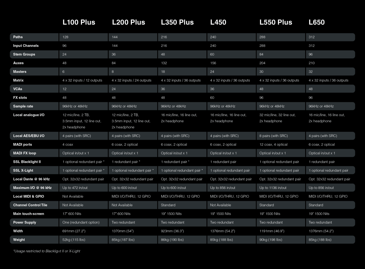 Consoles de studioOracleConsoles de la série ORIGINAWS δeltaDuality FuseSystem T for MusicTriniTyTables de mixageBiG SiXSiXMicrophones USB portables SSL CONNEX