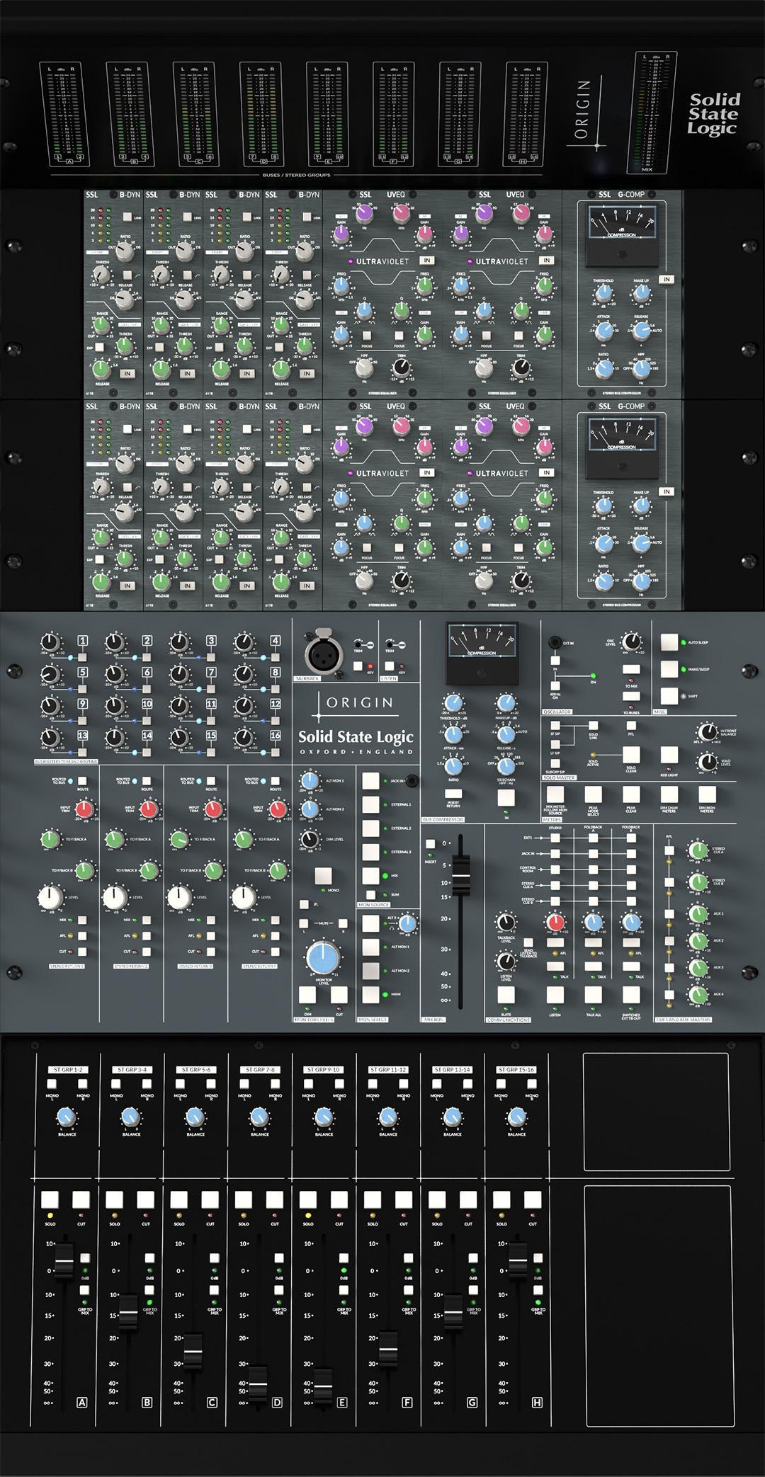 Les propriétaires actuels d'ORIGIN peuvent bénéficier d'un kit de mise à niveau. La conception innovante des tranches de console ORIGIN EVO permet de les installer sur des consoles existantes. Ces kits de mise à niveau sont disponibles en versions 8 canaux, ce qui rend le processus de mise à niveau facile à gérer et économique, par étapes. Contactez un expert SSL pour plus d'informations.