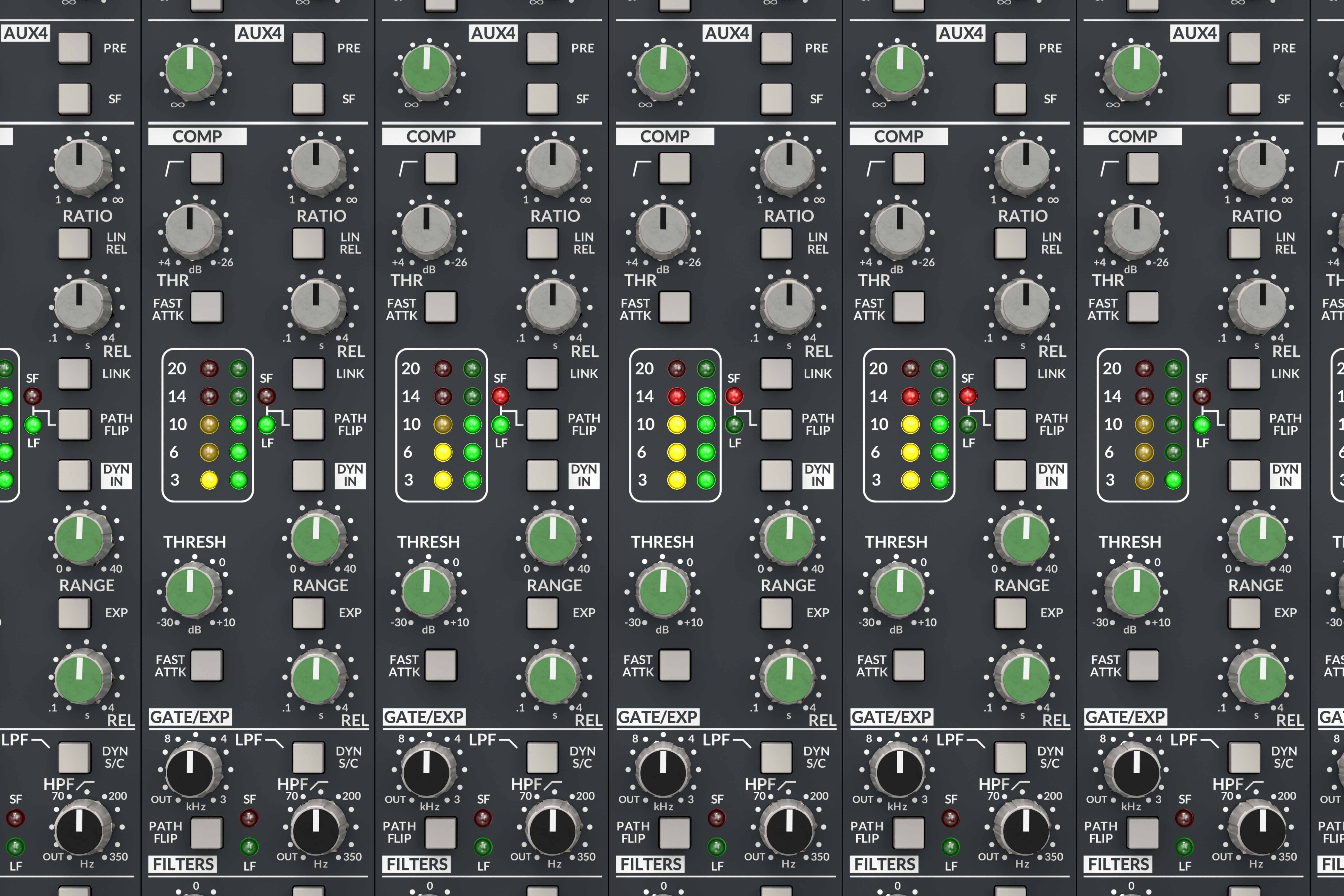 Chaque compresseur intègre une fonction LINK qui transmet le signal de sidechain aux canaux adjacents, permettant ainsi de relier entre eux plusieurs canaux consécutifs. La section dynamique de l'ORIGIN EVO intègre un détecteur de sidechain RMS véritable et un étage de réduction de gain entièrement discret, identique à la puce VCA de classe A utilisée dans la console d'origine. Des commandes flexibles vous permettent de contourner la courbe à courbe douce, d'activer une attaque rapide et de sélectionner un relâchement logarithmique ou linéaire, offrant ainsi trois caractéristiques de compression distinctes qui ont façonné d'innombrables enregistrements classiques.