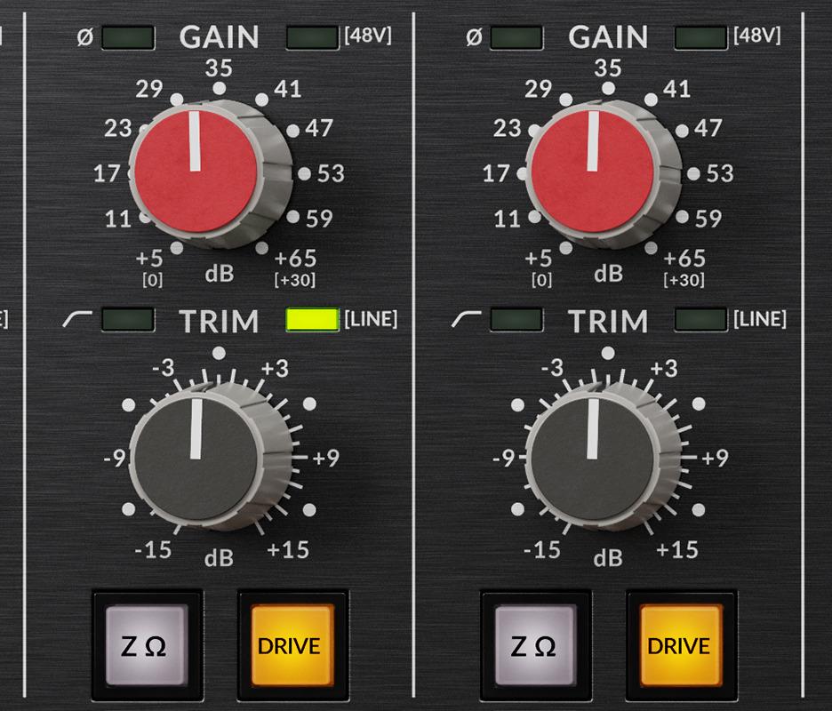 Le PURE DRIVE OCTO propose quatre options d'impédance d'entrée pour les préamplis micro, permettant ainsi aux ingénieurs du son d'explorer diverses possibilités sonores ou d'adapter au mieux l'impédance du préampli à celle du microphone. De plus, chaque préampli micro intègre une alimentation fantôme +48 V indépendante, une inversion de polarité et un filtre passe-haut.