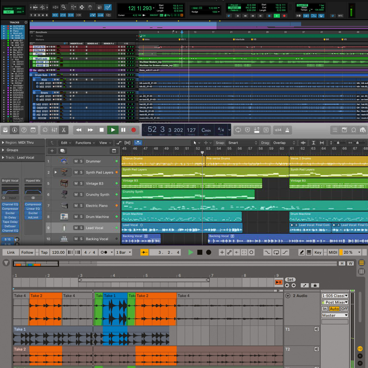 Connectez simultanément jusqu'à trois stations de travail audio numériques (DAW) différentes dans le Plug-in Mixer et l'UF8/UF1, puis passez facilement de l'une à l'autre.