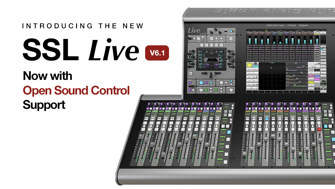 La version 6.1 de SSL Live propose une mise à jour majeure de son interface générique Open Sound Control (OSC), comprenant notamment un nouveau graphique PAN permettant une interaction tactile sur les axes X-Y ou X-Z, ainsi que le contrôle par encodeur et fader pour un maximum de 8 faders et 8 fonctions de commutation. Cela garantit une intégration plus poussée avec les systèmes de traitement immersif compatibles OSC, y compris ceux utilisant des profils OSC publiés ou la norme ADM-OSC, en plus des implémentations OSC externes sur mesure existantes de SSL pour le panoramique.